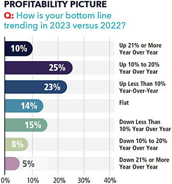 50% OF SURVEY RESPONDENTS IN THE WESTERN REGION SAY THEIR BOTTOM LINE IS TRENDING UP OVER 2022.