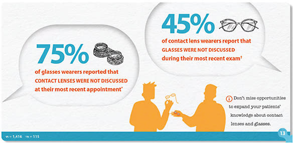 This is the assertion CLI makes clear through 18 pages of data, beginning with the proof that patients interested in dual wear overwhelmingly exist—and evenly on both sides—with about 1 in 5 glasses-only wearers interested in contact lenses and vice versa. Of the respondents, 8 in 10 agreed that having choice is “a powerful benefit” for reasons including feeling their best in different situations, considering how their eyes feel, or simply wanting to choose their style.