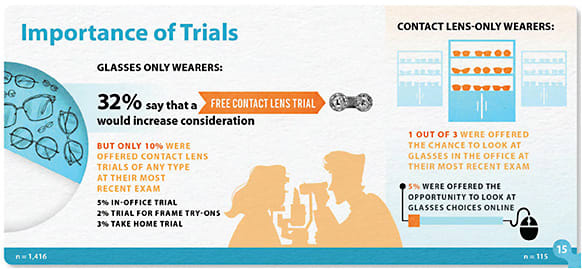 According to CLI, suggesting trials has strong potential for success—whether it’s for a first-time wearer or a former wearer who could benefit from experiencing more advanced and innovative contact lens designs.