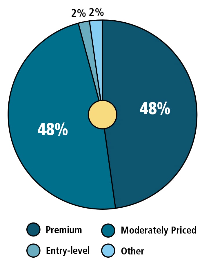 • Frame Materials. In contrast to the national average of 10%, the metal-plastic combination is the most sold frame material for 38% of respondents in the West.