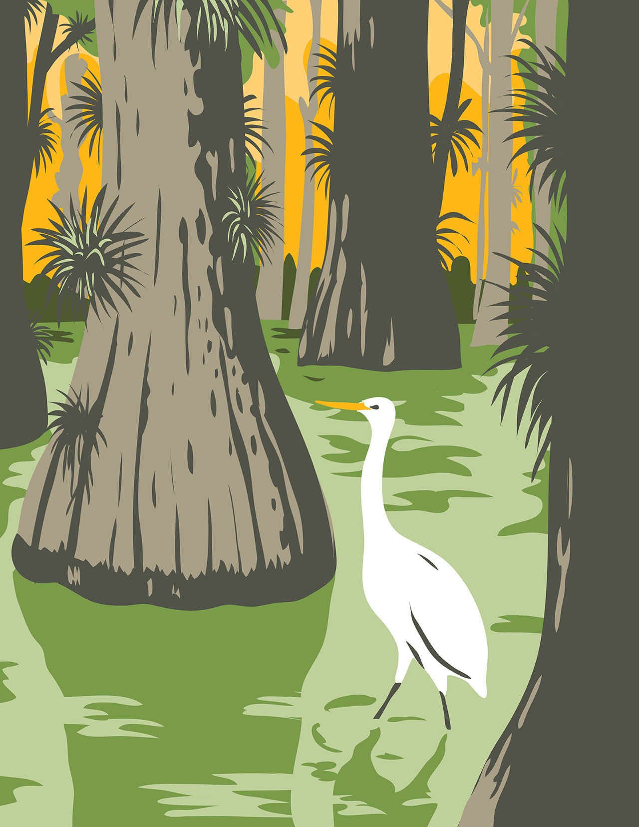 Patient + practice convo starter: The Great Egret, seen here in a depiction of the Everglades National Park, is one of the largest wading birds of the Florida Everglades, with a wingspan of more than four feet.