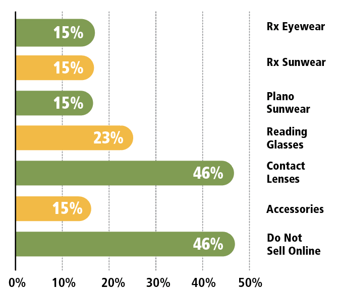 Q: Which of the following products do you sell online (Rx eyewear, Rx sunwear, plano sunwear, reader glasses, contact lenses, accessories)?