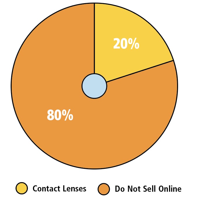 • Online Selling. The most-sold category for online sales this year is contact lenses. Nearly one-third (31%) of respondents nationwide report that they currently sell contacts online. In other categories, like plano sunwear, readers, and accessories, online sales are way down. For example, 34% of ECP respondents indicated they sold plano sunwear online last year. This spring, it’s just over 7%. When asked, “If you don’t sell online now, do you expect to be in the next two years?,” 29% of ECPs just surveyed said yes. That’s down from more than 80% a year ago.
