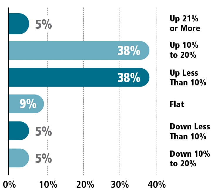 75% of survey respondents in the West say their bottom line is trending up less than 10% over 2023 levels.