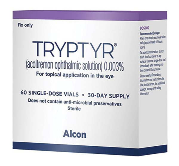 According to Alcon, Tryptyr demonstrates a statistically significant increase in tear output as early as day one of treatment—a faster-acting option compared with other DED treatments.