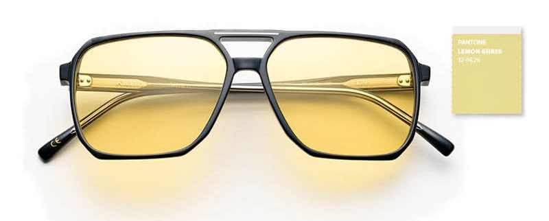 Kador Eyewear model Big 1 Light is a modern and sophisticated take on the classic navigator shape with lenses reminiscent of this season’s yellowish green.