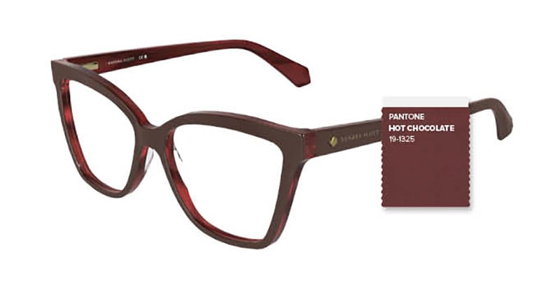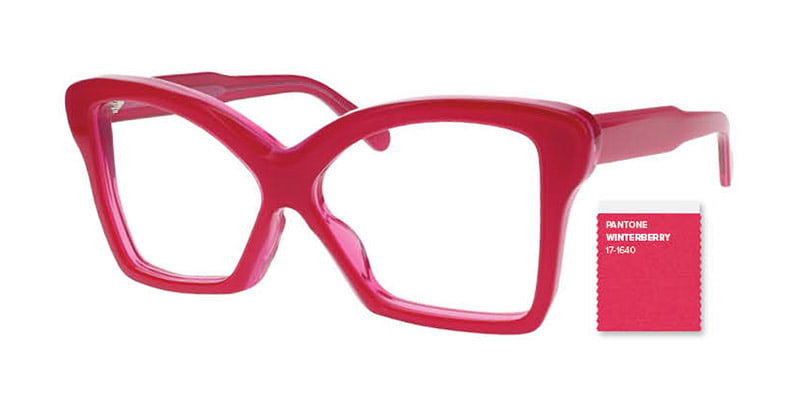 The Illa Sveva style from ClearVision Optical in fuchsia laminate is a showstopping take on the Winterberry hue, which Pantone shares “ignites the senses.”
