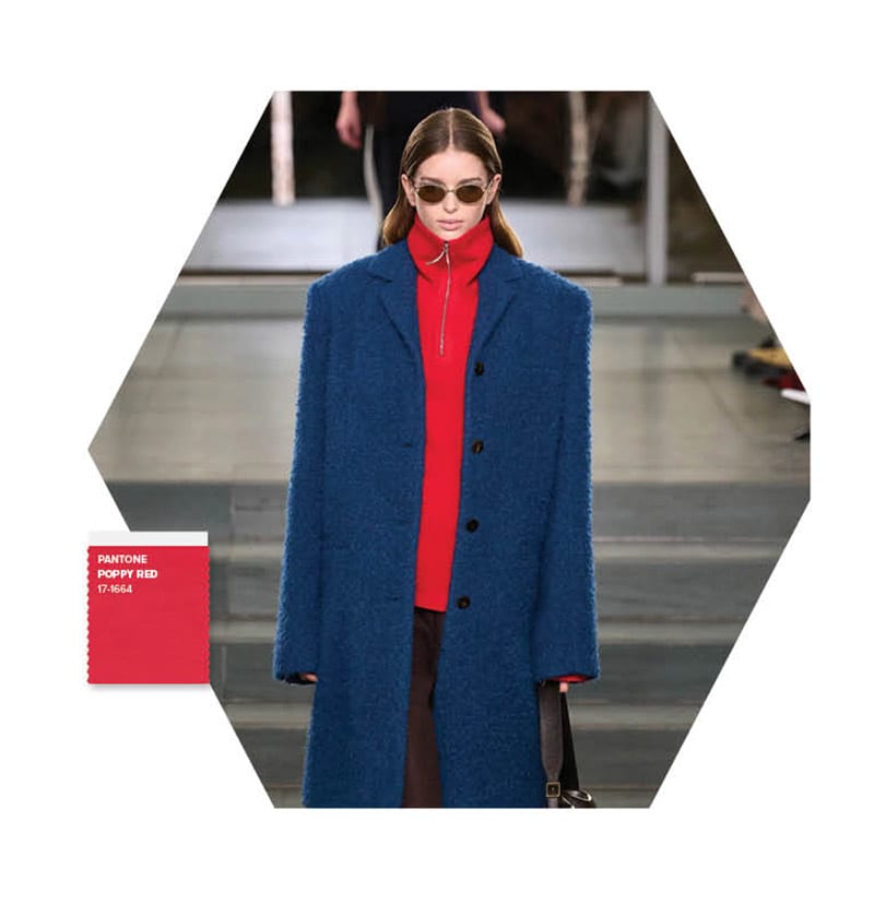 Even subtle incorporations of this red make a statement, as spotted on the Tory Burch runway (frames from EssilorLuxottica).